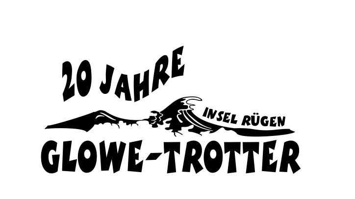 Und da fing es an in meinem Kopf zu arbeiten. Was kann ich den Gästen anbieten ohne dass es zu Hause rumliegt. (Den Sand bringen sich die Urlauber, mehr oder weniger freiwillig, von allein mit nach Hause, er findet sich bestimmt in jeder Kofferritze wieder.) Da setzte ich mich mit einem Freund zusammen, bei einem Futschi (Limette, Weinbrand, Cola) und überlegten uns erst mal einen Namen. Irgendetwas mit Glowe sollte es heißen. Mir schoss der Name Globetrotter durch den Kopf, Weltreisender, was natürlich damals schon ein geschützter Name war. Ein zweiter Futschi musste her. Mit einmal war Glowe – Trotter geboren, Glowereisender. Ja, natürlich warum auch nicht. Hurra... wir haben ihn. Da wussten wir aber noch nicht, mit wie viel Schreibkram das verbunden war, verwegen genug waren wir, um den Namen Glowe-Trotter auch schützen zu lassen. Wie sollte also unser Logo aussehen….Viele Nächte und Futschi`s folgten, um ein schönes Logo zu entwerfen. Eines Tages hatte ich mein erstes selbstkreiertes Logo, blau mit weißer Schrift, so wie Sie es heute noch sehen. Mittlerweile wusste ich auch was ich den Urlaubern anbieten kann, T-Shirts und Jacken, genau da sollte mein Logo drauf. Welch eine Freude.